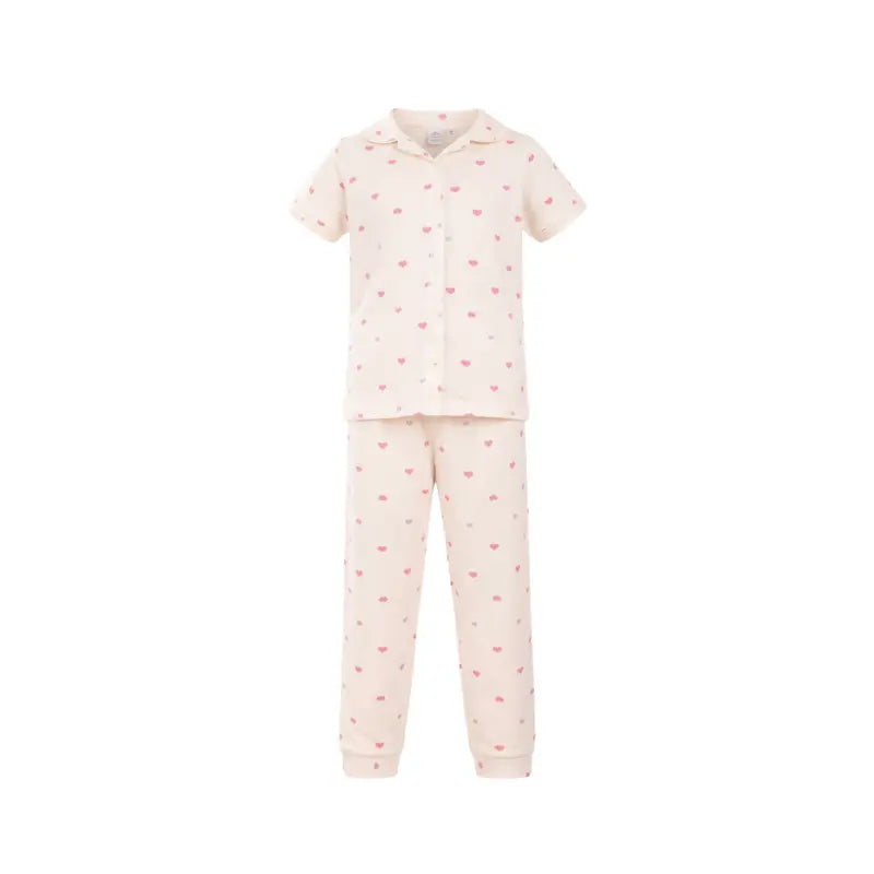 Kids Night Pant Set | Cream with pink heart print