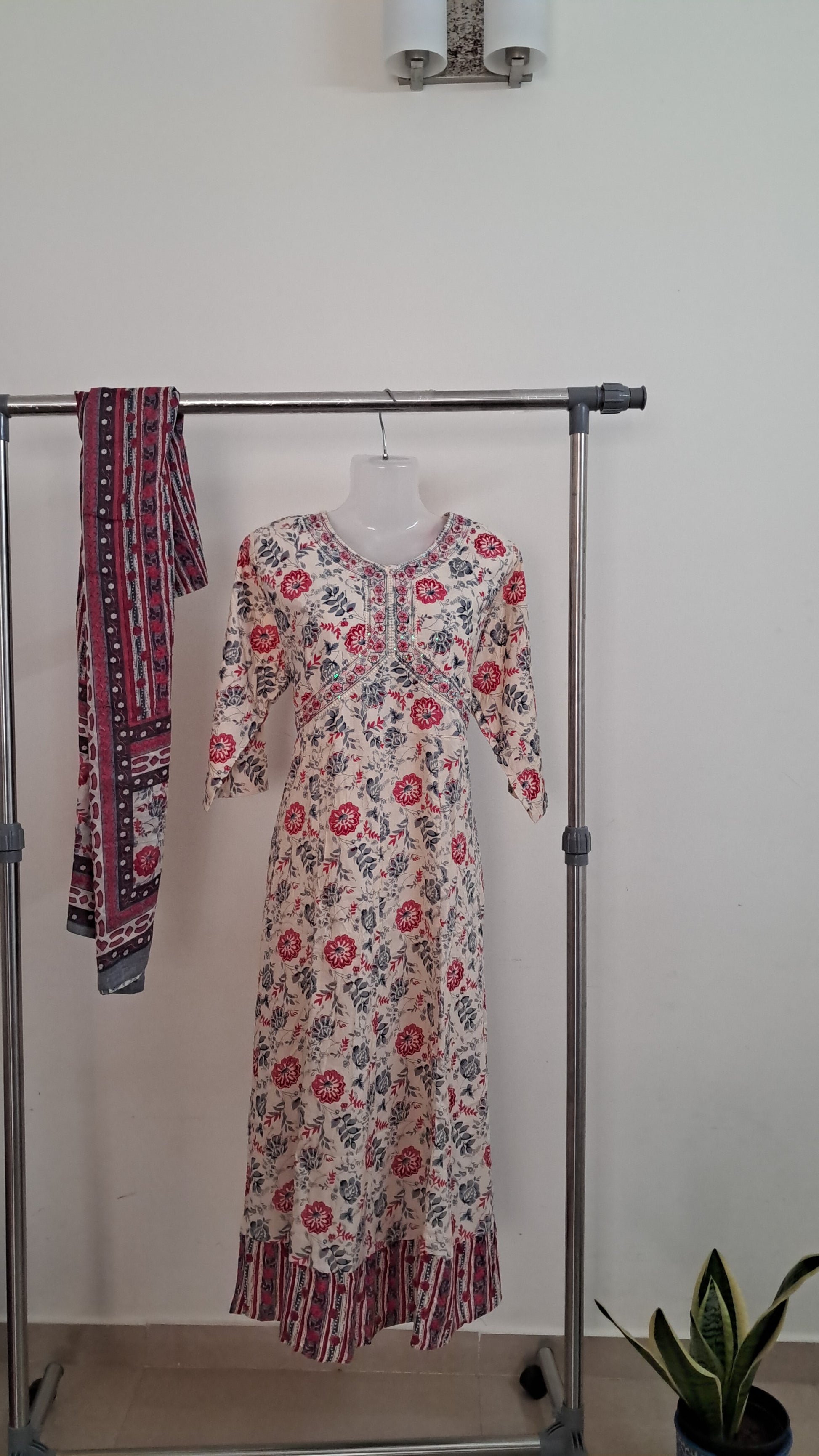 Women Anarkali | Cream color Alia cut anarkali with dupatta