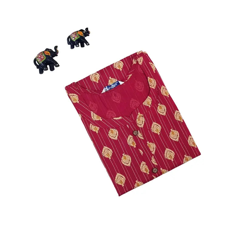 Women Kurti | Straight cut |Rani pink with collar round neck and bhutta